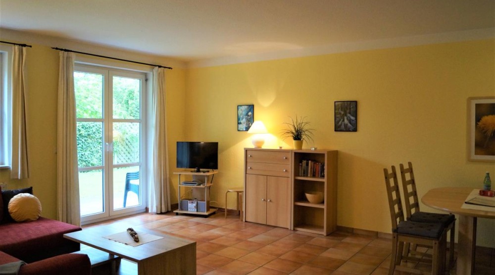Die kleine gepflegte Wohnanlage befindet sich in unmittelbarer Nähe der Kirche und des Kurhauses. Die Ferienwohnung ist im Erdgeschoss des Hauses ruhig, aber dennoch zentral gelegen. Genießen Sie die schöne Sonnenterrasse des Apartments oder unternehmen Sie einen Spaziergang, der Sie zu den nah gelegenen Geschäften, Restaurants und Cafés führt. Das Meer ist allgegenwärtig und in der Luft zu spüren: eingebettet zwischen Salzhaff und Ostsee sind die Wege zum Wasser kurz. Im benachbarten Kurhaus, das Sie in wenigen Schritten über den "eigenen Hof" erreichen, lädt das schöne Hallenbad zum Entspannen ein. Eine Sauna und ein Solarium runden das Angebot ab. Leseratten freuen sich über die Bibliothek mit umfangreichem Lesematerial. Besonders praktisch: die Frühstücksbrötchen holen Sie beim Bäcker direkt in der Anlage. Ihr Auto parken Sie auf einem zugewiesenen Stellplatz in der Tiefgarage. Hier steht den Gästen auch eine Münzwaschmaschine mit -trockner zur Verfügung.