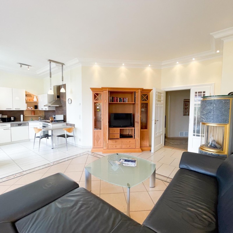 Neben zwei separaten Schlafzimmern und zwei Bädern verfügt die Wohnung zusätzlich über einen geräumigen Wohnbereich mit integrierter Einbauküche. Vom Esstisch aus im verglasten Erker haben Sie einen herrlichen Blick auf den "eigenen" Garten und die Strandpromenade. Die Küche ist mit hochwertigen Markeneinbaugeräten ausgestattet und lässt kaum einen Wunsch offen.